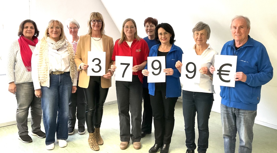 Bei der Übergabe der gesamten Spende in Höhe von 3.521 Euro bedachten Vertreterinnen und Vertreter der Krankenkasse je zur Hälfte das städtische Projekt „Gmünder machen Wünsche wahr“ und den