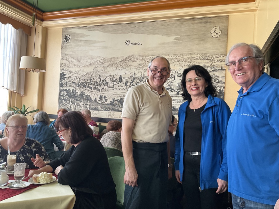 nicht nehmen, vor dieser alten Gmünder Ansicht in seinem Café die Gäste des Vereins Herzenswege persönlich zu begrüßen. Beim Februar-Café begrüßten auch wieder Eva Mihm (Foto 2.v.re.), Vorsitzende